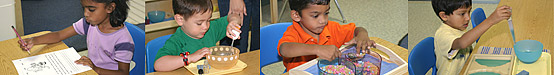 | Our classrooms are designed with areas of practical life, sensorial, math, language, cultural and manipulative materials. The materials in each of these curriculum areas reinforce the underlying objectives of concentration, order, coordination and independence. Our curriculum also consists of weekly themes. |